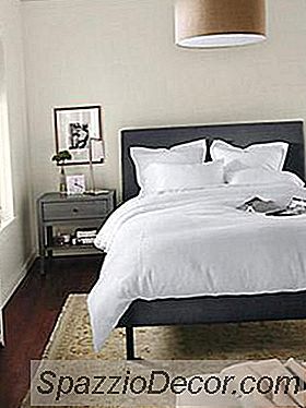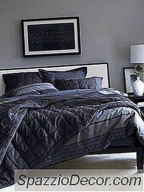 Stahlgrau ist eine heiße Farbe in der Inneneinrichtung, aber es kann sich maskulin und industriell anfühlen. In diesem Schlafzimmer des Crate and Barrel-Katalogs sorgen mehrschichtige Textilien und Kissen in dezenten Grautönen für einen einladenden Stil.