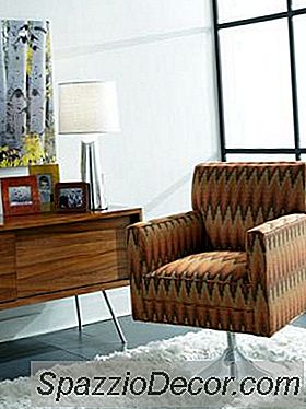 Diese Ecke mit freundlicher Genehmigung des Mitchell Gold + Bob Williams-Katalogs ist bereit zum Lesen oder Entspannen. Sie verfügt über einen weichen Teppich, einen Stuhl mit Zickzackmuster und eine gut bestückte Bar, die nur einen Arm entfernt ist.