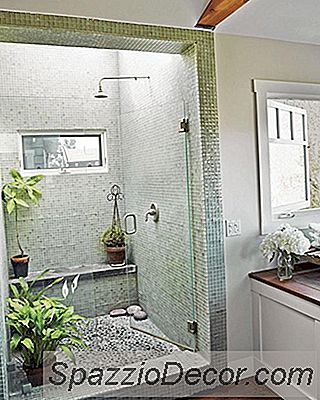 Warum Geld bezahlen, um für das Wochenende in ein Spa zu fliegen, wenn Sie eines in Ihrem eigenen Zuhause erstellen können? Dieses atemberaubende Badezimmer ist sonnendurchflutet, da das Oberlicht über der Dusche angebracht ist. Mit drei Grüntönen gestaltet, ist die Stimmung entspannend und warm. Botanicals und schwarze Steine vervollständigen den Spa-Look.