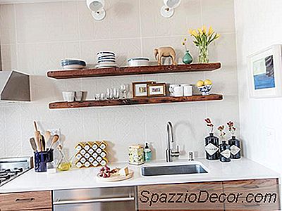 Das wichtigste Ziel des Paares war es, den L-förmigen Schrankaufbau in Angriff zu nehmen, der die sonst geräumige Küche praktisch unbrauchbar machte. Sie rissen die Schränke heraus und installierten eine zentrale Insel und einen Eingang, um den Fluss im gesamten Raum zu verbessern. In Anbetracht des zusätzlichen Stauraums der Custom-Insel verzichteten sie auf Oberschränke und entschieden sich für offene Regale.